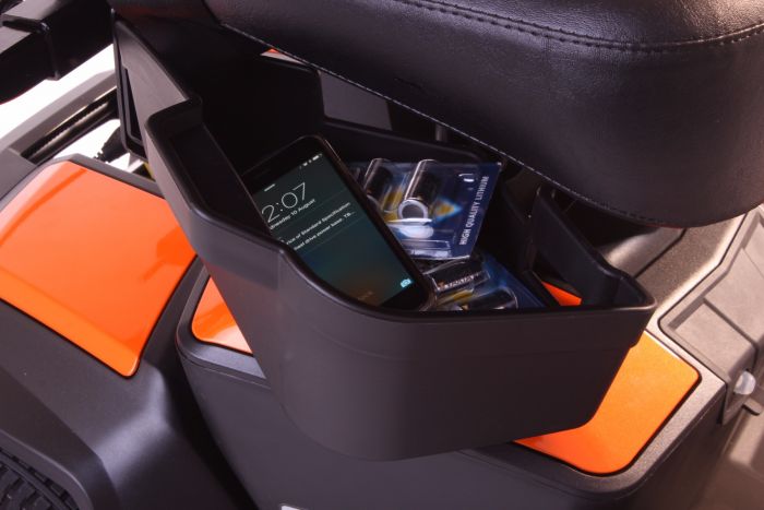 - Dual swing away under seat storage